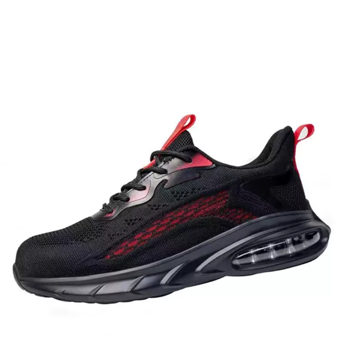 - Fly-kötött felsőrész: Tetszetős és modern kialakítás, fekete és piros színben, PVC elemekkel a fűzőknél és extra merevítéssel a sarokrésznél, amely biztosítja a tartósságot és a kényelmet.