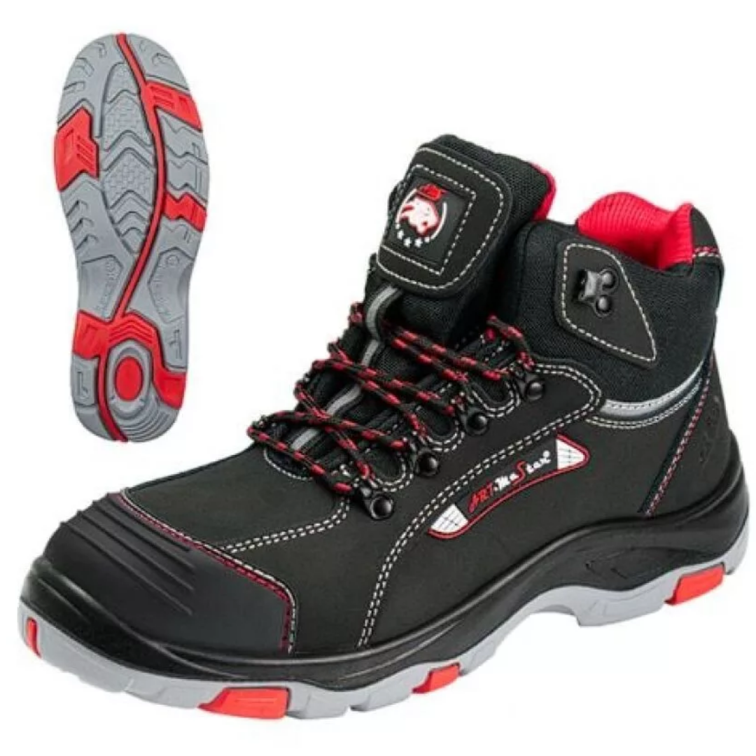 A BTNRed S1 munkavédelmi bakancs kombinálja a modern dizájnt és a kiemelkedő védelmet: acél orrmerevítője és TPU orrvédelme biztosítja a lábujjak védelmét, miközben puha belső kialakítása és csúszásgátló talpa kényelmes és biztonságos viseletet garantál. Strapabíró anyagai és fényvisszaverő elemei ideálissá teszik ipari környezetbe, ahol a lábbeli védelme és komfortja elsődleges szempont. Ez a bakancs tökéletes választás, ha magabiztosan és biztonságban szeretnél dolgozni.